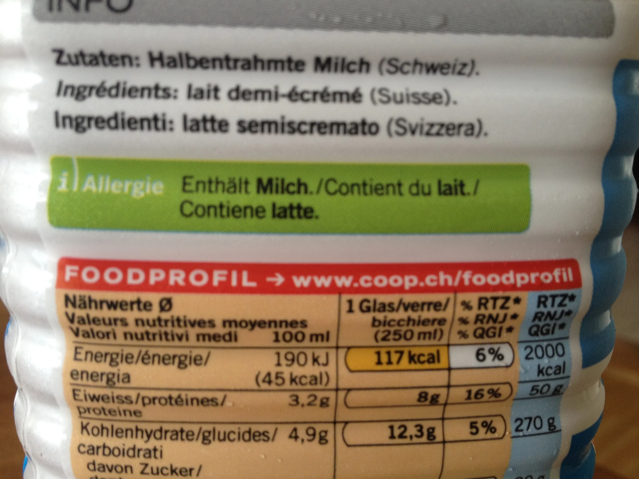 Der Allergiehinweis "enthält Milch" auf einer Milchpackung ist mehr als überflüssig. Entweder ist es der Gesetzgeber oder der Coop, der dem Konsumenten gar nichts mehr zutraut. Der Konsument soll offenbar nicht einmal mehr den Zusammenhang zwischen Milch und seiner Laktoseunverträglichkeit herstellen können.