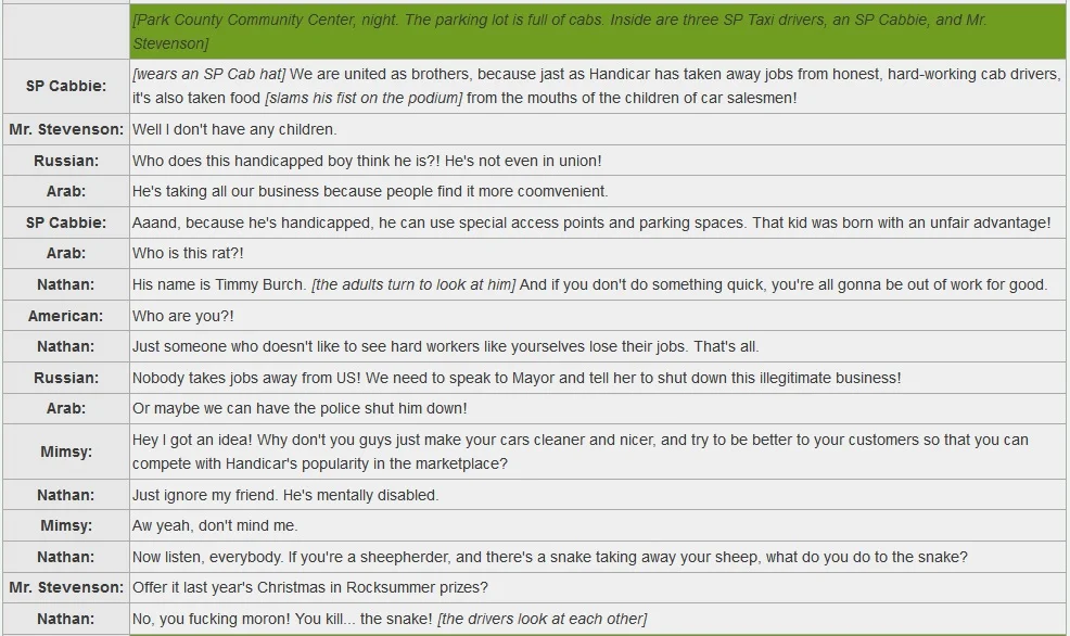 “Mimsy: ‘Hey I got an idea! Why don’t you guys just make your cars cleaner and nicer, and try to be better to your customers so that you can compete with Handicar’s popularity in the marketplace?’